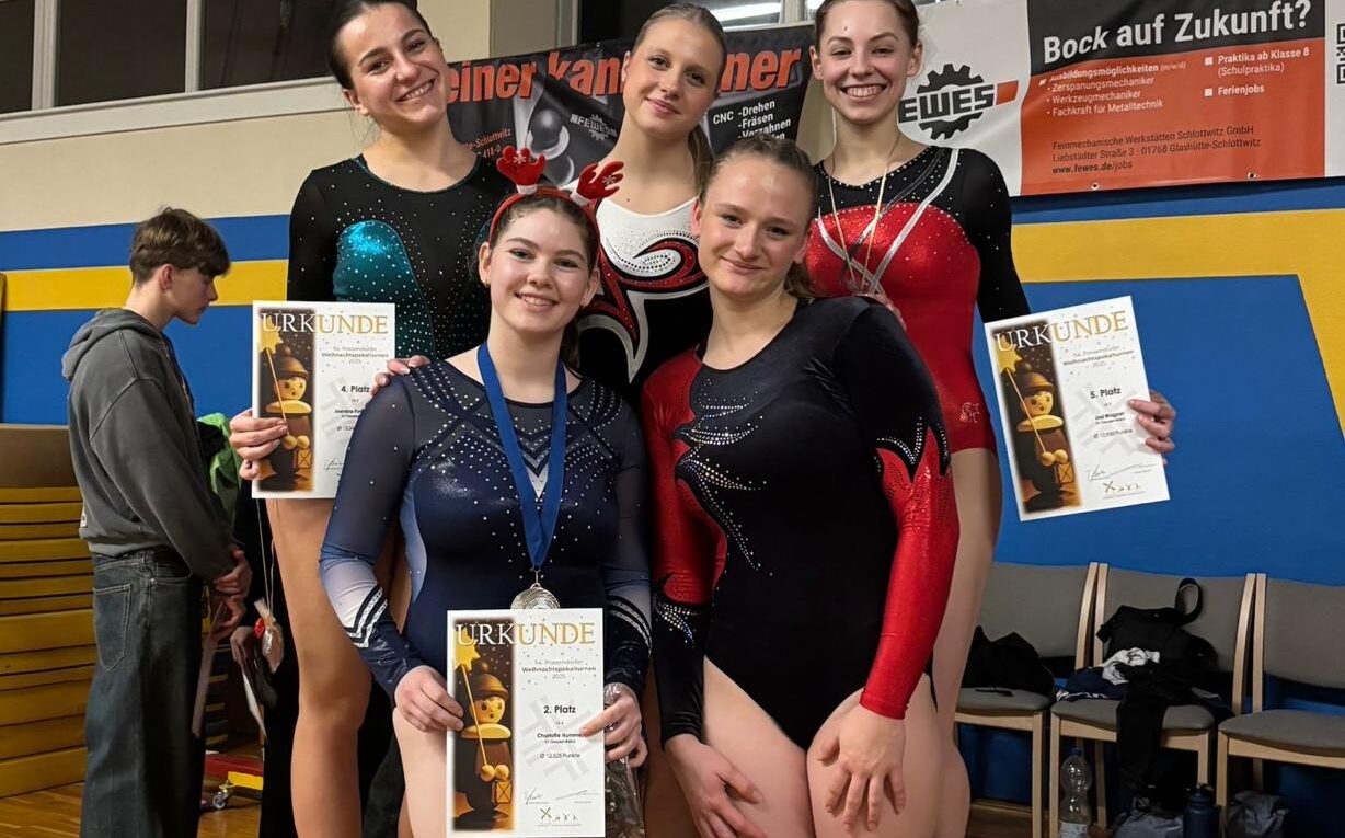 Am 29. November ging es für uns zum Possendorfer Weihnachtspokalturnen. In der kleinen, aber charmanten Halle wollten wir die Weihnachtszeit in entspannter und fröhlicher Stimmung einläuten. Charlotte startete in der LK4, Hannah, Jolina, Josi und Jasmina in der LK2.