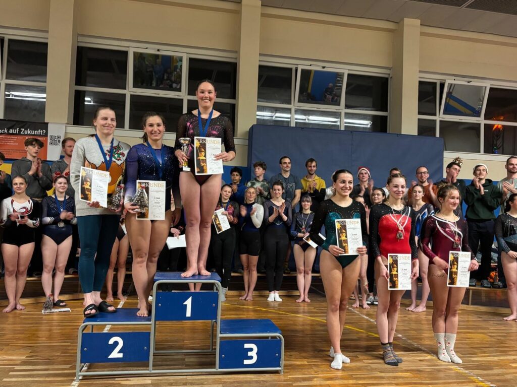 Bei einem Starterfeld von zehn Turnerinnen durften Josi und Jasmina bei der Siegerehrung der LK2 nach vorne treten und sich über den 5. und 4. Platz freuen. Charlotte durfte sogar aufs Podest und sich in der LK4 bei einem Startfeld von 15 Turnerinnen über einen tollen zweiten Platz freuen. Klasse Leistung!
